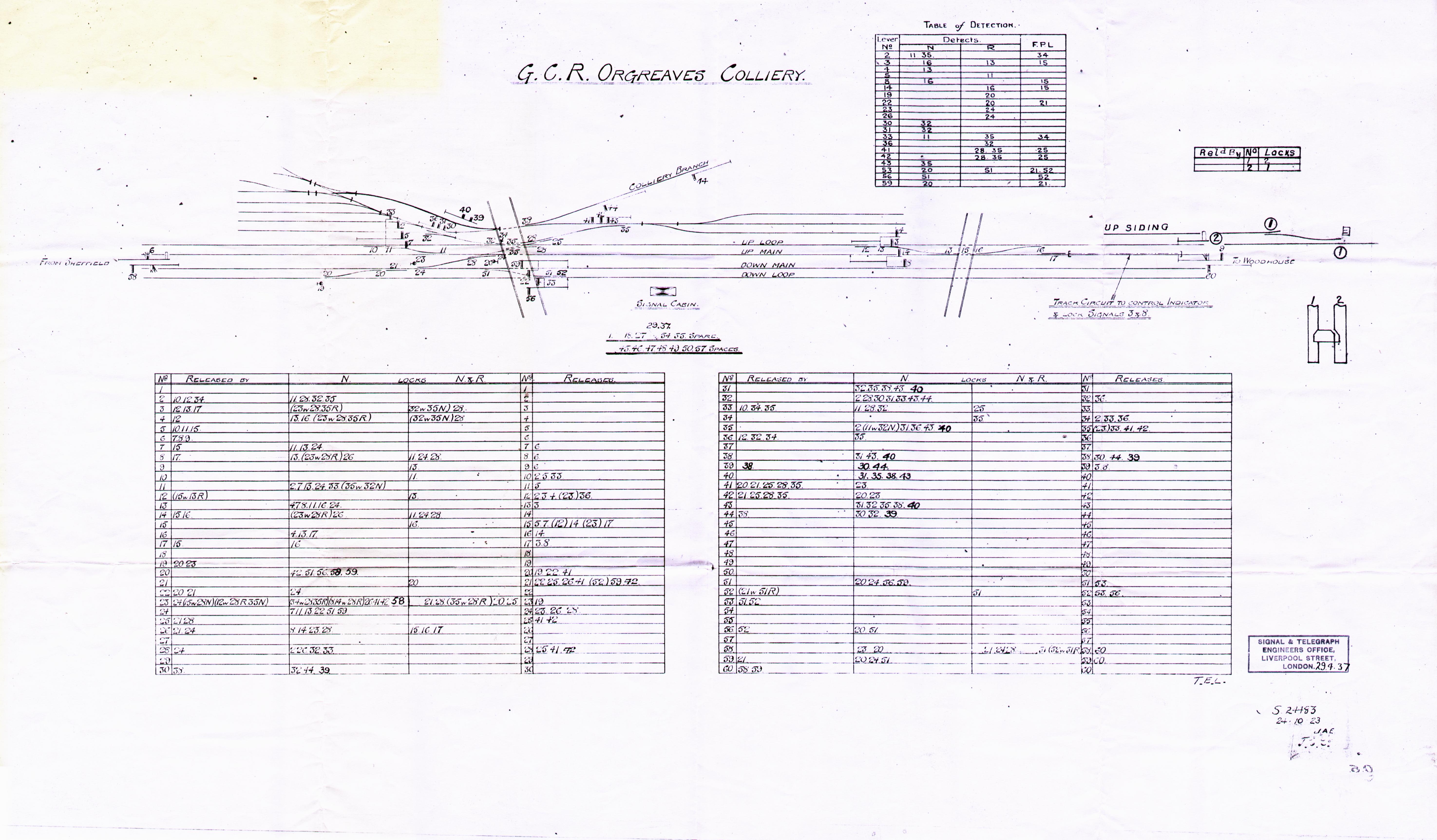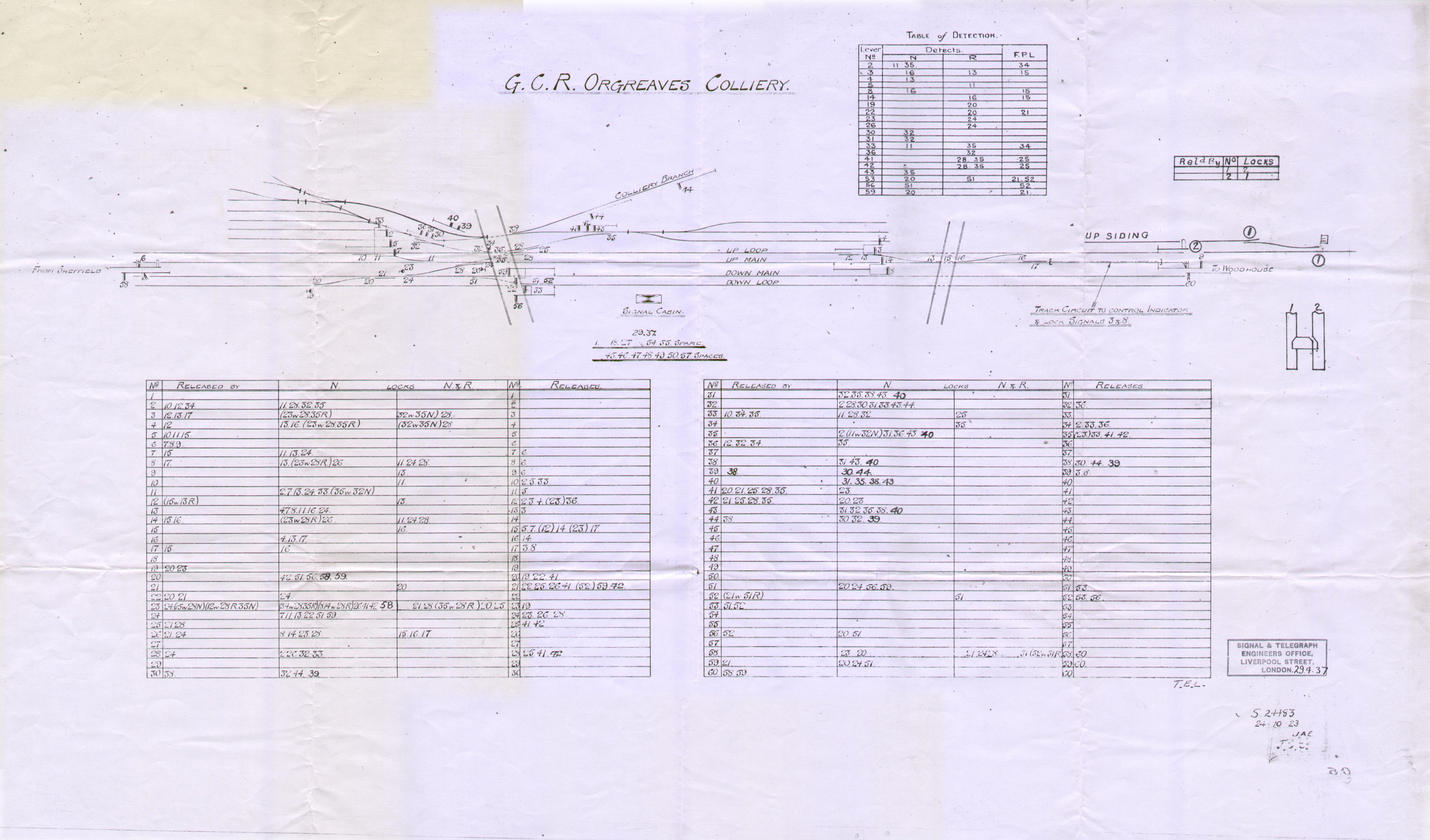 The diagrams presented here are a mixture of actual box diagrams or office copies of box diagrams (denoted SBD) and working sketches (denoted WS). They are arranged by company which provided the railway line, not the diagram - most of the diagrams are in fact from the British Railways era. Some of these diagrams are in my own collection; others have been loaned or scanned by other people. The late Andy Rush kindly allowed me to display here diagrams from the Industrialogical Associates Collection. These diagrams were scanned, and in some cases, coloured by him. Harry Gardner, a former BR signalman, has kindly allowed me to display here some of his hand drawn copies of signal box diagrams. Thanks are also due to Simon Foster for help in scanning some of my own diagrams, and providing scanned copies of others. Additions to this page will be made from time to time, as circumstances - and my scanning inclinations! - permit. If you find these diagrams of interest, you may also wish to visit Brian Begg-Robertson's Sectional Appendix site. Filenames are generally of the form place_q65.jpg, where the q65 (or other value) refers to the compression of the jpg file. In some cases a higher quality file is available by entering _q95 or in a very few cases _q100. Cheshire Lines Committee Dearne Valley Railway Cromford and High Peak Railway Furness Railway Great Central Railway Great Central and Great Northern Joint Line Great Central and Hull and Barnsley Joint Line Great Central and Midland Joint Lines Great Central and North Staffordshire Joint Line Great Eastern Railway Great Northern Railway Great Northern and Great Eastern Joint Line Great Northern, Lancashire and Yorkshire and North Eastern Joint Line (Methley Joint Line) Hull and Barnsley Railway London, Brighton and South Coast Railway Lancashire Derbyshire and East Coast Railway Lancashire and Yorkshire Railway Liverpool Overhead Railway London and North Western Railway Manchester South Junction and Altrincham Railway Midland Railway North Eastern Railway North London Railway Oldham Ashton and Guide Bridge Railway South Eastern Railway Tottenham and Hampstead Railway Wirral RailwayCheshire Lines Committee Bewsey SBD, probably 1930's, 718 kb; Bewsey final layout before closure SBD, 1306 kb. Brinnington Junction SBD, 1168 kb. The diagram includes the line to Reddish Junction, but was obviously in use after this connection was closed, as someone has tried to delete it. Diagram courtesy Simon Foster. Brookfold SBD, 1970, 988 kb Brunswick NX panel, photographed at the NRM. left, centre, right, oblique (260 to 320 kb each). Carrington Sidings SBD, dated 18 September 1966, 62 kb, courtesy Simon Foster. Cheadle Junction SBD, 1979. Hale (SBD, 1974) 266 kb Hartford CLC Junction SBD, no date, 2562 kB Glazebrook East Junction (SBD, 1926) 1165 kb, higher quality version 5674 kB Knutsford SBD, no date, 339 kB Mobberley, copy drawn by Harry Gardner Northwich Central SBD, no date, 952 kB Partington Junction SBD, earlier diagram, headed BR but CLC style. Partington Junction SBD, later diagram, BR style. Skelton Junction SBD, 141 kb, courtesy Simon Foster. Stockport (Tiviot Dale) SBD, office copy. Trafford park Junction SBD, 1969, diagram courtesy of Simon Foster, 612 kb. Woodley Junction - see Great Central and Midland Joint Railway (below). Dearne Valley Railway Black Carr Sidings East LMSR SBD (amended by BR), 645 kB, courtesy Industrialogical Associates Collection. Cromford and High Peak Railway Parsley Hay SBD, no date, diagram courtesy of Simon Foster, 327 kb. Furness Railway Corkickle No 1 SBD 1403 kB, courtesy Chris Littleworth. Great Central Railway Adwick Crossing SBD, 220 kB, courtesy Industrialogical Associates Collection. Aldam Junction SBD, the final layout before closure - diagram is dated 1982. The Worsborough Branch, and also Wombwell Main Junction, had closed the previous year. 380 kb. Also Aldam Junction SBD whilst 4-track, 542 kB, courtesy Industrialogical Associates Collection. Ashton Junction (Guide Bridge) SBD 1960, 853 kB. Barnby Dun SBD, 169 kB, courtesy Industrialogical Associates Collection. Barnsley Junction SBD, no date, after goods lines to Willey Bridge were truncated, but before connection between branch and main lines was removed, 1139 kB, courtesy Industrialogical Associates Collection. Blackmoor Crossing SBD, 2715 kB. Brancliffe East Junction SBD, 9-11-1942, 483 kB, courtesy Industrialogical Associates Collection. Note the approach lit distant signal. Brocklesby Junction SBD, 625 kB, courtesy Industrialogical Associates Collection. Brookhouse Colliery SBD, 1942, 433 kB, courtesy Industrialogical Associates Collection. Bullhouse Colliery SBD, 543 kB, courtesy Industrialogical Associates Collection. Chapeltown GCR diagram, dated 1-5-1916. Diagram made available by Alan Whitehouse. 1002 kb Cortonwood Colliery SBD, 125 kB, courtesy Industrialogical Associates Collection. Courthouse Junction SBD, 123 kB, courtesy Industrialogical Associates Collection. Darfield Main SBD, no date, but probably 1960s, courtesy of G Nicholson, 507 kb Darnall West SBD, 173 kB, courtesy Industrialogical Associates Collection. Denaby Crossing SBD, 24-10-1959, 581 kB, courtesy Industrialogical Associates Collection. later diagram, about 1980? Dodworth: several diagrams are available for Dodworth. Dodworth (GCR/LNER) SBD 350 kb. First diagram from current box SBD 271 kb. Slightly later diagram SBD 362 kb, courtesy Alan Whitehouse. Finally, here is a very late diagram, after the line was singled between Barnsley and Penistone. And here are two Dodworth diagrams, apparently from a scheme which never existed (Dodworth never worked single line to Courthouse Junction): single line to Courthouse Junction SBD 176 kb, courtesy Industrialogical Associates Collection; also sketch for single line to Courthouse Junction, including interlocking, (apparently dated 1967). Dunford West (SBD, 381 kb) Shows arrangements for single line working in Woodhead tunnel, but does 